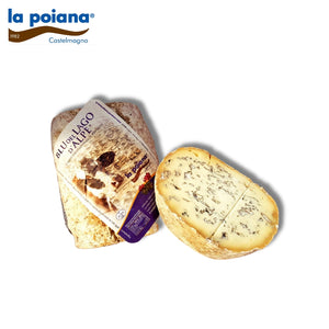 Formaggio a pasta erborinata cruda prodotto con latte di mucca pastorizzato. Crosta non edibile