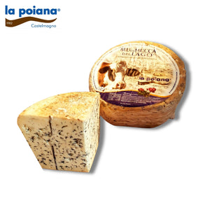 Il BLU DI MUCCA è un formaggio che appartiene alla nobile e antica famiglia degli “erborinati”. E’ caratterizzato da una crosta particolarmente sottile e da una pasta morbida e piacevolmente cremosa, segnata da delicate striature di muffe blu che ricordano il colore dell’acqua dei laghi di montagna.