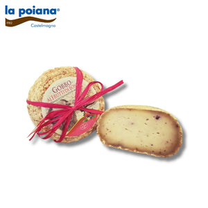 Formaggio da latte ovino con frutti di bosco disidratati; Crosta non edibile