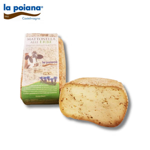 La MATTONELLA ALLE ERBE è un formaggio semplice e piacevole in ogni occasione, prodotto dai nostri casari in maniera artigianale, utilizzando metodi tradizionali. Il nome Mattonella è dato dalla sua particolare forma che ricorda un mattone. La sua pasta – che stagionando si fa semidura – è caratterizzata da un color avorio attraversata dal trito di sette erbe di montagna, delle minuscole occhiature sparse ed un gusto latteo-burroso, con sentori floreali e di erbe aromatiche. Ottima a dadini nelle insalate estive, per un buon risotto alle erbette o per farcire torte salate.