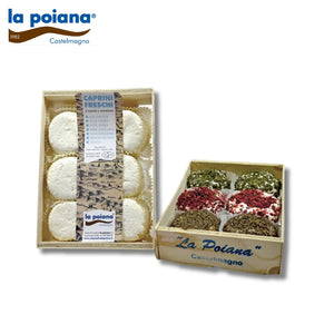 I CAPRINI FRESCHI sono un formaggio dolce e delicato, prodotto con latte di capra puro che dona aromi intensi di nocciola, sottobosco e fungo. Privo di crosta è ottimo a fine pasto ma, indicato anche negli aperitivi bianco, come si presenta nella confezione o aromatizzato con erbette e spalmato su crostini di pane caldo. Consigli: si abbina con vini bianchi vivaci